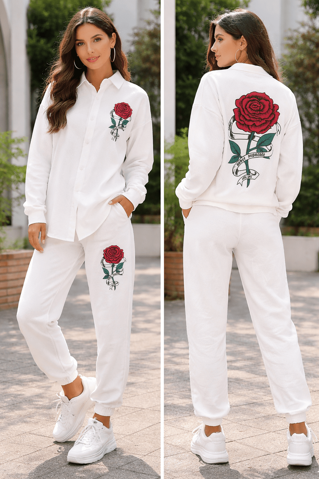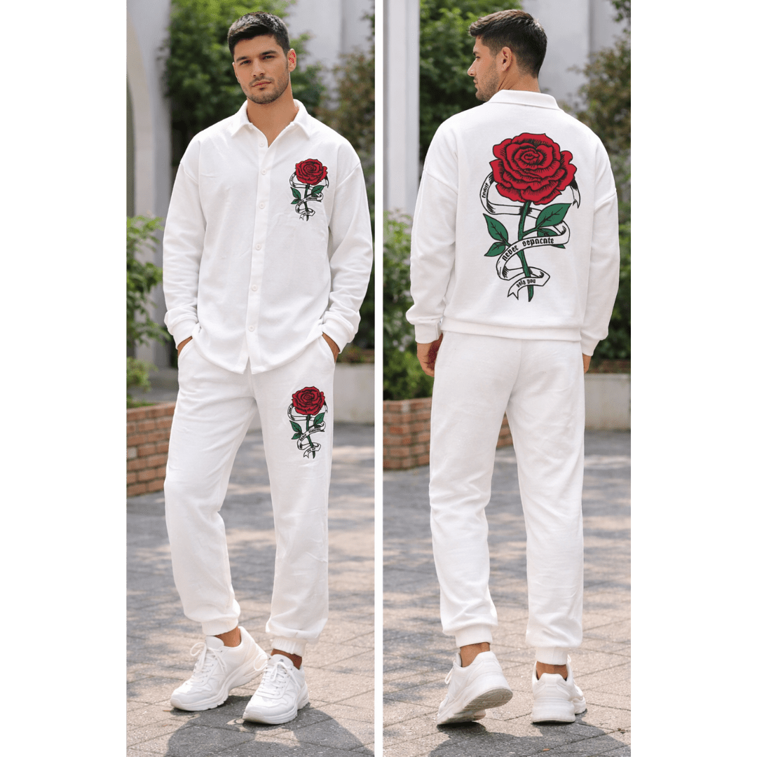 Men’s Full Sleeve Relaxed Fit Casual Co-ord Set (White Rose Print)